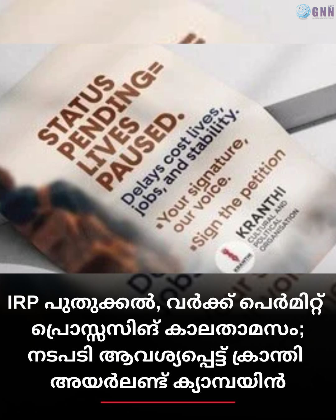 ഈ പ്രശ്നത്തിന് പരിഹാരം കാണുന്നതിനായി ക്രാന്തി അയർലണ്ട് (Kranthi Ireland) ബഹുജന ക്യാമ്പെയ്ന് തുടക്കം കുറിച്ചു. കാലതാമസം അവസാനിപ്പിക്കാൻ സർക്കാർ അടിയന്തര നടപടി സ്വീകരിക്കണമെന്ന് ആവശ്യപ്പെട്ടാണ് ക്യാമ്പയിൻ. ഇതിന്റെ ഭാഗമായി പൊതുജന ഹർജിയും ക്രാന്തി അയർലണ്ട് സമർപ്പിക്കും. പെറ്റീഷനിൽ ഒപ്പുവച്ച് നിങ്ങൾക്കും ഈ ക്യാമ്പയിന്റെ ഭാഗമാക്കാം. പെറ്റീഷൻ ലിങ്ക്.