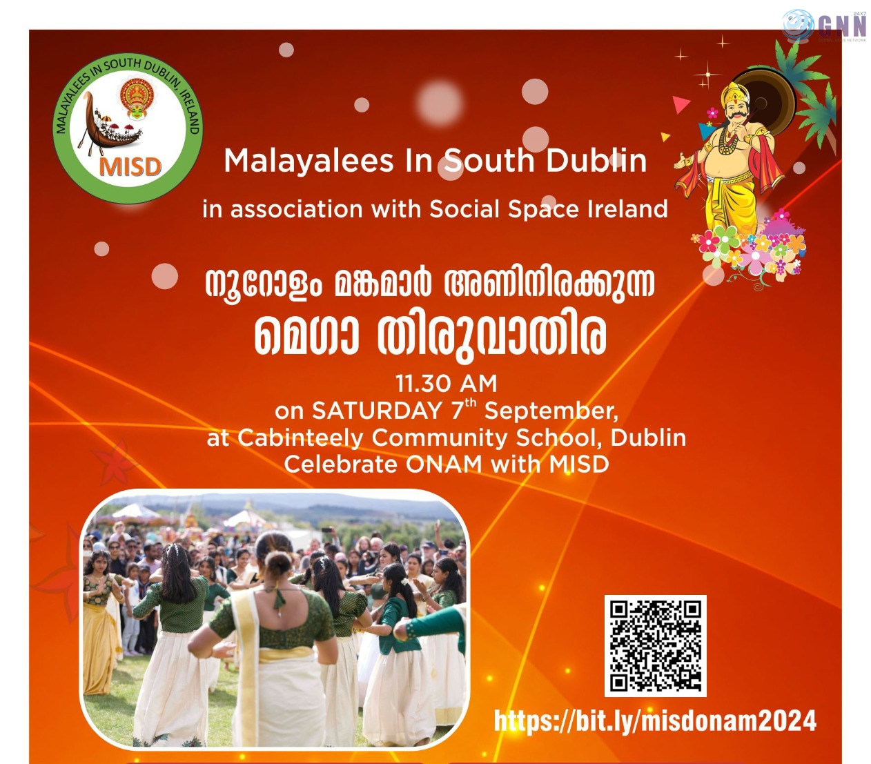 ഓണത്തിനെ വരവേൽക്കാൻ നാടും നഗരവും ഒരുങ്ങുകയാണ്. ഐറിഷ് മലയാളികളുടെ ഓണാവേശത്തിനും ഇക്കുറി പാകിട്ടേറും. Malayalees In South Dublin, Social Space Ireland എന്നിവരുടെ സംയുക്താഭിമുഖ്യത്തിൽ സംഘടിപ്പിക്കുന്ന ആഘോഷ പരിപാടി ‘തിരുവോണം 2024’, സെപ്റ്റംബർ 7 ശനിയാഴ്ച നടക്കും.