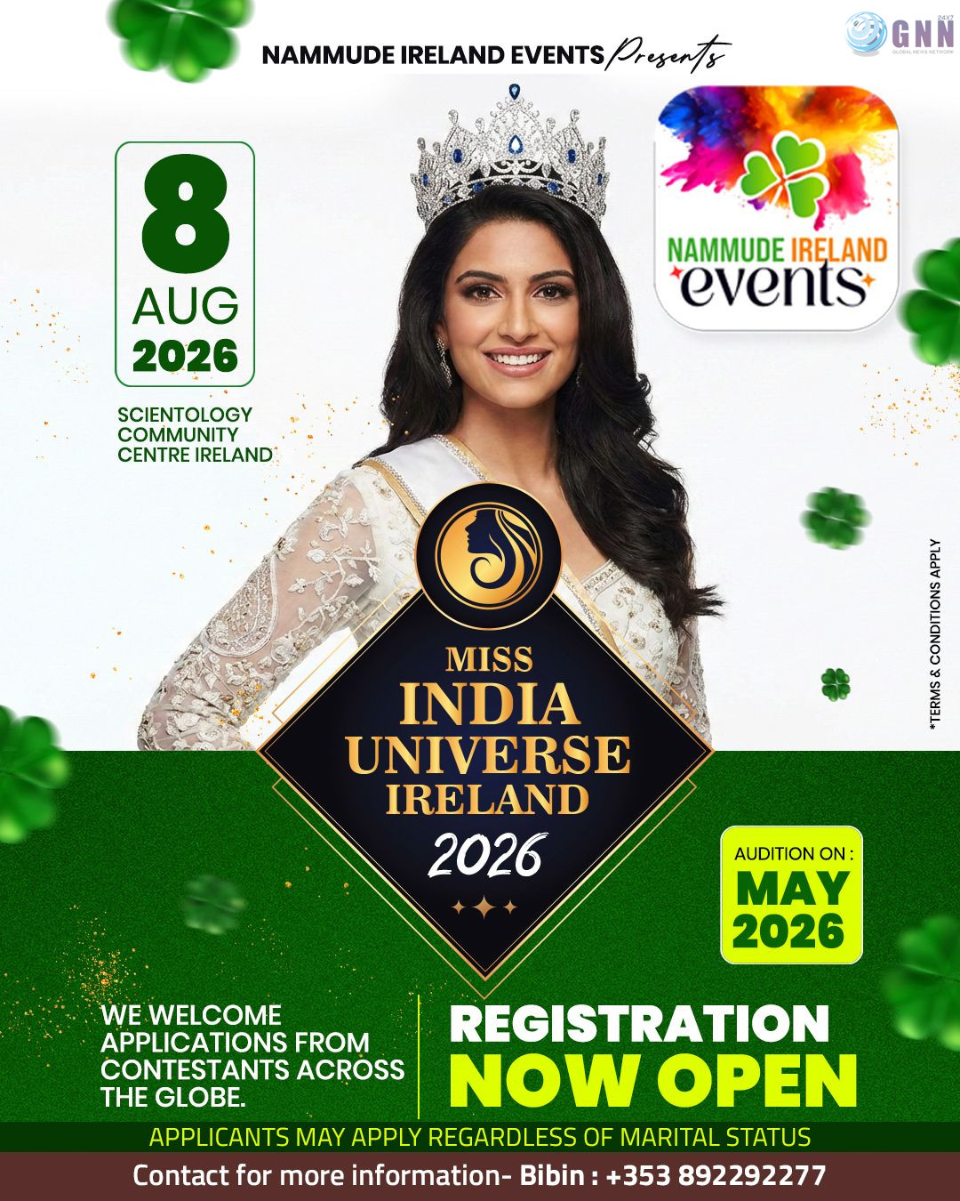 മിസ്സ്‌ ഇന്ത്യ യൂണിവേഴ്സ് അയർലണ്ട് 2026- വിജയ കിരീടം അണിയാൻ ഒരുങ്ങാം..