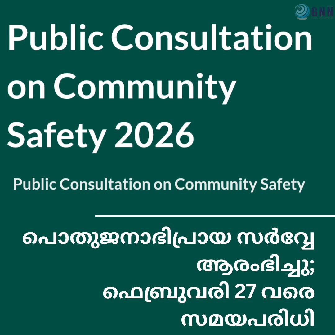 2026 ഫെബ്രുവരി 5 വ്യാഴാഴ്ച മുതൽ ഫെബ്രുവരി 27 വെള്ളിയാഴ്ച വൈകുന്നേരം 5 മണി വരെ നിങ്ങൾക്കും സർവ്വേയിൽ പങ്കെടുക്കാം. Public Consultation on Community Safety 2026