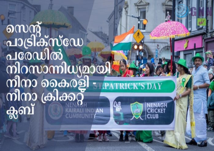 നീനാ (കൗണ്ടി ടിപ്പററി) : അയർലണ്ടിലെ ചരിത്രപ്രസിദ്ധമായ സെൻറ് പാട്രിക്സ് ദിനാഘോഷത്തോടനുബന്ധിച്ച് നീനയിൽ നടന്ന പരേഡിൽ നിറസാന്നിധ്യമായി മലയാളി സമൂഹം.നീനാ കൈരളി അസോസിയേഷനും നീനാ ക്രിക്കറ്റ് ക്ലബും സംയുക്തമായാണ് പരേഡിൽ അണിനിരന്നത്.കുട്ടികളും മുതിർന്നവരും പരമ്പരാഗത രീതിയിലുള്ള വസ്ത്രങ്ങൾ ധരിച്ച് അണിനിരന്നത് നയന മനോഹരമായിരുന്നു .നീനാ ക്രിക്കറ്റ് ക്ലബ് അംഗങ്ങൾ ജേഴ്സി ധരിച്ച് ബാറ്റും ബോളുമായി നീങ്ങുന്നത് വ്യത്യസ്തമായ കാഴ്ചയായി.