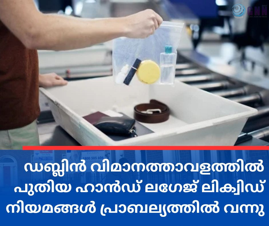 ഡബ്ലിൻ വിമാനത്താവളത്തിലെ പുതിയ നിയമങ്ങൾ അനുസരിച്ച്, സെക്യൂരിറ്റി ചെക്കിങ്ങിനായി യാത്രക്കാർക്ക് ഇനി ഹാൻഡ് ലഗേജിൽ നിന്ന് ലിക്വിഡ്സ്, ജെല്ലുകൾ, ഇലക്ട്രോണിക് വസ്തുക്കൾ എന്നിവ പുറത്തെടുക്കേണ്ടതില്ല.100 മില്ലി ലിക്വിഡുകളുടെയും ജെല്ലുകളുടെയും പരിധിയിൽ ഇളവ് വരുത്തി രണ്ട് ലിറ്ററായി ഉയർത്തി. കൊണ്ടുപോകാവുന്ന വസ്തുക്കളുടെ എണ്ണത്തിന് പരിധിയില്ല. മാറ്റങ്ങൾ അർദ്ധരാത്രി മുതൽ പ്രാബല്യത്തിൽ വന്നു. ദ്രാവകങ്ങളും ജെല്ലുകളും ഇനി വ്യക്തമായ പ്ലാസ്റ്റിക് ബാഗുകളിൽ സൂക്ഷിക്കേണ്ടതില്ല.