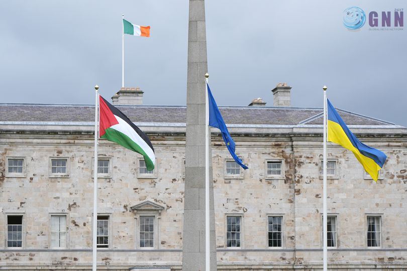 പാലസ്തീൻ രാജ്യത്തെ ഔദ്യോഗികമായി അംഗീകരിക്കാനുള്ള ഐരിഷ് ഗവൺമെൻ്റിൻ്റെ തീരുമാനത്തെത്തുടർന്ന് ഡബ്ലിനിലെ ലെയിൻസ്റ്റർ ഹൗസിന് പുറത്ത് പലസ്തീൻ പതാക ഉയർത്തി. Taoiseach സൈമൺ ഹാരിസ് , Tánaiste മൈക്കൽ മാർട്ടിൻ , ഗ്രീൻ പാർട്ടി നേതാവ് എമൺ റയാൻ എന്നിവർ ഈ തീരുമാനം നേരത്തെ പ്രഖ്യാപിച്ചിരുന്നുവെങ്കിലും ചൊവ്വാഴ്ച രാവിലെ കാബിനറ്റ് ഔദ്യോഗികമായി ഒപ്പുവച്ചു. വിദേശകാര്യ മന്ത്രി കൂടിയായ മാർട്ടിൻ കൊണ്ടുവരുന്ന പദ്ധതിയിൽ സമ്പൂർണ്ണ നയതന്ത്ര ബന്ധങ്ങൾ സ്ഥാപിക്കും.
