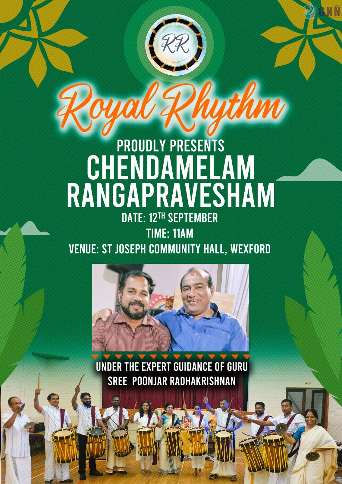 ലോകത്തിന്റെ നിറുകയിൽ കേരളത്തിന്റെ പാരമ്പര്യവും സംസ്കാരവും ഉയർത്തിപ്പിടിക്കുന്ന, കേരളീയരുടെ മാത്രം സ്വകാര്യ അഹങ്കാരമായ തൃശൂർ പൂരവും ചെണ്ടമേളവും. ഈ പാരമ്പര്യത്തെ ഹൃദയത്തിൽ ചേർത്ത് കൊണ്ട്, ഇങ്ങു ദൂരെ ഏഴ് കടലുകൾക്കപ്പുറത്തിരുന്നു, അയർലണ്ടിലെ കുറച്ചു മലയാളികൾ ചേർന്ന് ഗൃഹാതുരത്വം ഉണർത്തുന്ന താളമേളത്തിന്റെ അലകൾ കൊട്ടിക്കയറുകയാണ്. ഈ വരുന്ന സെപ്റ്റംബർ പന്ത്രണ്ടാം തീയതി, ഓണത്തിന്റെ ഏഴാം ദിവസമായ മൂലം നാളിൽ , വെക്സ്ഫോർഡ് മലയാളി കൂട്ടായ്മയുടെ (WMK) ഓണാഘോഷത്തോടനുബന്ധിച്ചു “റോയൽ റിഥം (RR)” പഞ്ചാരി മേളത്തിൽ രംഗപ്രവേശം കുറിക്കുകയാണ് .