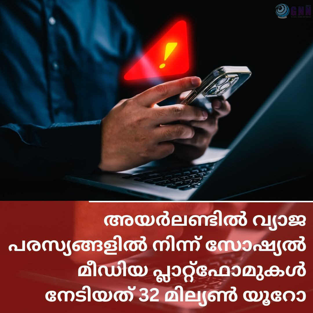 അയർലണ്ടിലെ ഉപഭോക്താക്കളെ ലക്ഷ്യം വച്ചുള്ള തട്ടിപ്പ് പരസ്യങ്ങളിൽ നിന്ന് കഴിഞ്ഞ വർഷം സോഷ്യൽ മീഡിയ പ്ലാറ്റ്ഫോമുകൾ €32 മില്യൺ വരുമാനം നേടിയതായി പുതിയ പഠനം പറയുന്നു.ഓൺലൈൻ ബാങ്കിംഗ് പ്ലാറ്റ്ഫോമായ Revolut ആണ് ഈ പഠനം കമ്മീഷൻ ചെയ്തത്.Juniper Research ആണ് പഠനം നടത്തിയത്. ഐറിഷ് വിപണിയിൽ, ഒരു തട്ടിപ്പ് സോഷ്യൽ മീഡിയ പരസ്യത്തിന് ശരാശരി €1,500 ൽ അധികം നഷ്ടപ്പെടുന്നതായി കണ്ടെത്തി. യൂറോപ്യൻ ഉപയോക്താക്കളെ ലക്ഷ്യം വച്ചുള്ള തട്ടിപ്പ് പരസ്യങ്ങളിൽ നിന്ന് പ്ലാറ്റ്ഫോമുകൾ പ്രതിവർഷം ഏകദേശം €4.4 ബില്യൺ സമ്പാദിക്കുന്നു.
