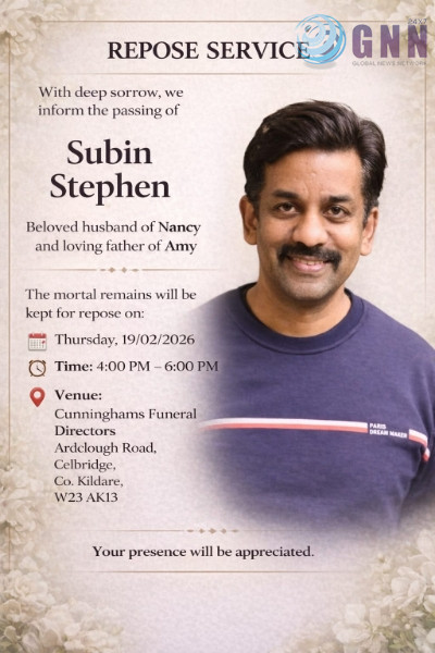 അയർലണ്ട് ആരോഗ്യവകുപ്പിൽ ഫിസിയോ തെറാപ്പിസ്റ്റ് ആയിരുന്ന സുബിൻ ഹൃദയാഘാത തുടർന്നായിരുന്നു മരണമടഞ്ഞത്.