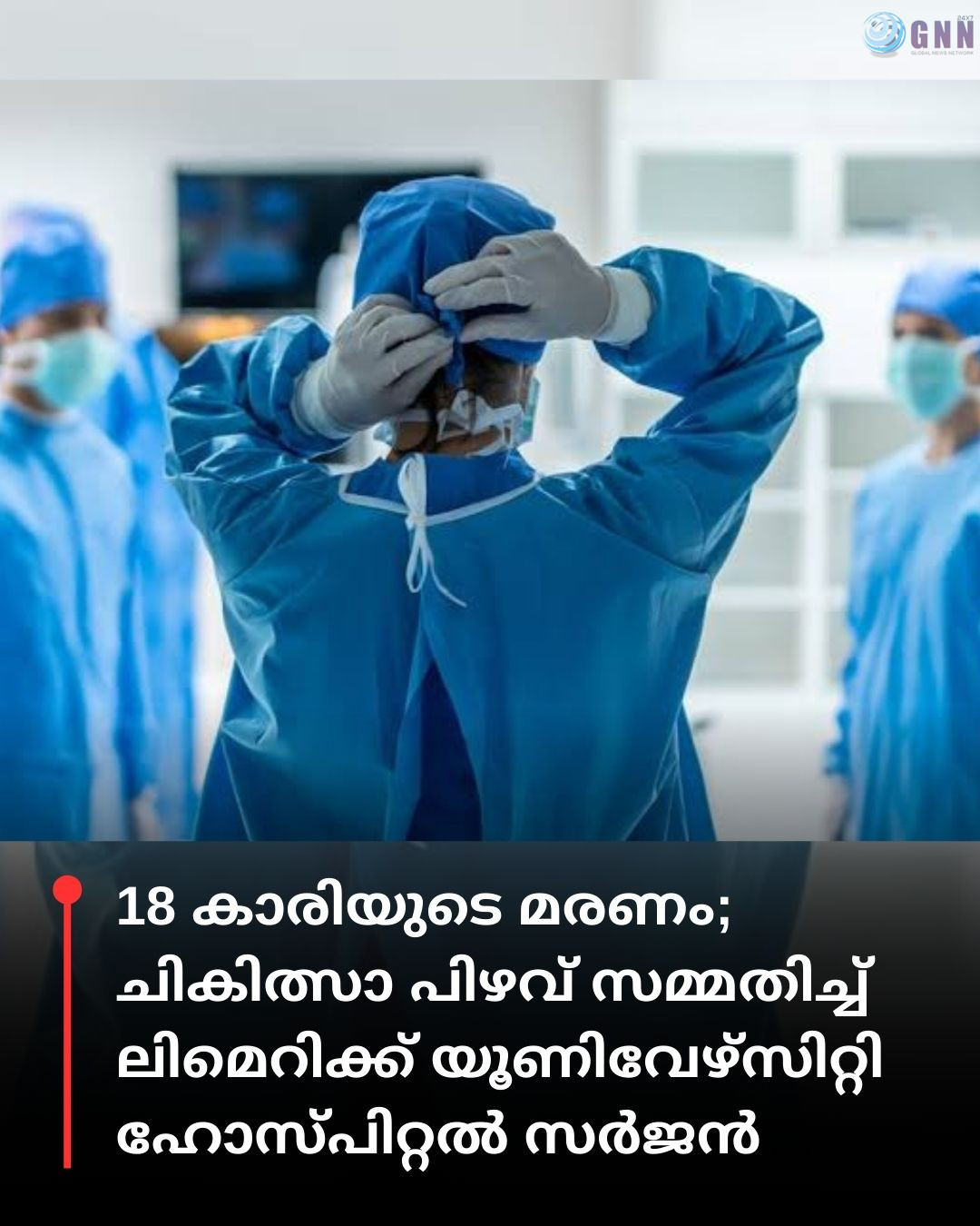 മതിയായ പരിചയമോ സർജിക്കൽ സപ്പോർട്ടോ ഇല്ലാതെ നടത്തിയ ശസ്ത്രക്രിയയ്ക്കിടെ രക്തശ്രാവത്തെ തുടർന്ന് കൗമാരക്കാരി മരിച്ച സംഭവത്തിൽ, ചികിത്സാ പിഴവ് നടന്നതായി ലിമെറിക്ക് യൂണിവേഴ്സിറ്റി ഹോസ്പിറ്റലിലെ സർജൻ സമ്മതിച്ചു.2018 മെയ് 8 ന് യുഎച്ച്എല്ലിൽ ജെസീക്ക ഷീഡിക്ക് എന്ന കൗമാരക്കാരിയുടെ മരണവുമായി ബന്ധപ്പെട്ട് മെഡിക്കൽ കൗൺസിലിന്റെ ഫിറ്റ്നസ്-ടു-പ്രാക്ടീസ് അന്വേഷണത്തിന് മുന്നിൽ ജനറൽ സർജനായ ഡോക്ടർ ആശിഷ് ലാൽ ഹാജരായി. ലിമെറിക്കിലെ ബ്രഫിൽ നിന്നുള്ള ബ്യൂട്ടി തെറാപ്പിസ്റ്റായ ഷീഡി, വയറിലെ ട്യൂമർ നീക്കം ചെയ്യുന്നതിനുള്ള ശസ്ത്രക്രിയയ്ക്കിടെ ഉണ്ടായ സങ്കീർണതകൾ കാരണം ഒന്നിലധികം അവയവങ്ങൾ തകരാറിലായി മൂന്ന് ദിവസത്തിന് ശേഷം മരണപ്പെടുകയായിരുന്നു.