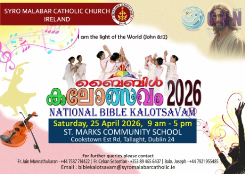 അയർലണ്ട് സീറോ മലബാർ സഭയുടെ പ്രഥമ നാഷണൽ ബൈബിൾ കലോത്സവം ഏപ്രിൽ 25ന് താലായിൽ