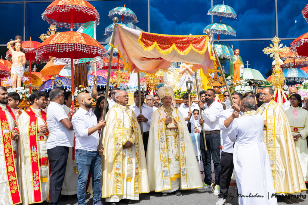 വിശുദ്ധ കുർബാനയ്ക്കു ശേഷം അയർലൻഡിലെ മണ്ണിൽ മാർതോമാ നസ്രാണികളുടെ  വിശ്വാസം പ്രഘോഷിച്ച്, കൊടികളും, പൊൻ, വെള്ളി കുരിശുകളും നൂറുകണക്കിനു മുത്തുകുടകളുമായി ആയിരക്കണക്കിനു വിശ്വാസികൾ പ്രദക്ഷിണത്തിൽ അണിനിരന്നു.  ലൂക്കൻ കുർബാനസെൻ്റർ ഒരുക്കിയ  കേരള തനിമയാർന്ന ചെണ്ടമേളം പ്രദക്ഷിണത്തിനു കൂടുതൽ മികവേകി.  ചെറുപുഷ്പം മിഷൻ ലീഗ് (CML) ടീഷർട്ട് ധരിച്ച് പതാകകളുമായി പതാകയേന്തിയ കുഞ്ഞു മിഷനറിമാരും  സീറോ മലബാർ യൂത്ത് മൂവ്മെൻ്റ്   പതാകകളേന്തി യുവജനങ്ങളും സെറ്റു സാരിയും മരിയൻ പതാകകളുമായി മാതൃവേദി പ്രവർത്തകരും കൊടികളേന്തിയ കുട്ടികളും കേരള തനിമയിൽ മുണ്ടുടുത്ത് മുത്തുകുടകളുമായി പിതൃവേദി പ്രവർത്തകരും, അയർലണ്ടിലെ വിവിധ കുർബാന സെൻ്ററുകളിൽനിന്നെത്തിയ അൾത്താരശുശ്രൂഷകരായ കുട്ടികളും,  ആദ്യകുർബാന സ്വീകരിച്ച വേഷത്തിൽ കുട്ടികളും പ്രദക്ഷിണത്തെ വർണാഭമാക്കി. മാലാഖമാരുടേയും വിശുദ്ധരുടേയും വേഷത്തിൽ വന്ന കുട്ടികൾ പ്രത്യേകം ശ്രദ്ധിക്കപ്പെട്ടു,   കേരള സഭയുടെ എല്ലാ വിശുദ്ധരുടേയും തിരുസ്വരൂപങ്ങൾക്കൊപ്പം നോക്കിലെ മാതാവിന്‍റെ തിരുസ്വരൂപവും വഹിച്ചുകോണ്ട് ജപമാല ചൊല്ലി നോക്കിലെ ബസലിക്കായിൽനിന്ന് ആരംഭിച്ച പ്രദക്ഷിണം മാതാവ് പ്രത്യക്ഷപ്പെട്ട ദേവാലയത്തിൽ സമാപിച്ചു. പ്രദക്ഷിണത്തിന് ബെൽഫാസ്റ്റ് റീജണൽ ഡയറക്ടർ ഫാ. ജോസ് ഭരണികുളങ്ങരയും ഡബ്ലിൻ റീജയണും നേതൃത്വം നൽകി.