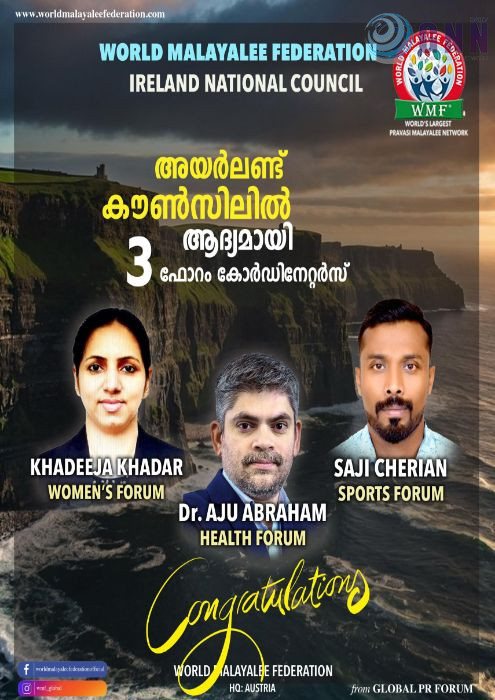 അയർലണ്ട് നാഷണൽ കോർഡിനേറ്റർ ഷൈജു തോമസ് പ്രസിഡന്റ് ദിനിൽ പീറ്റർ സെക്രട്ടറി സന്ദീപ് K S ട്രെഷറർ സ്റ്റീഫൻ ലൂക്കോസ് എന്നിവർ അറിയിച്ചു.