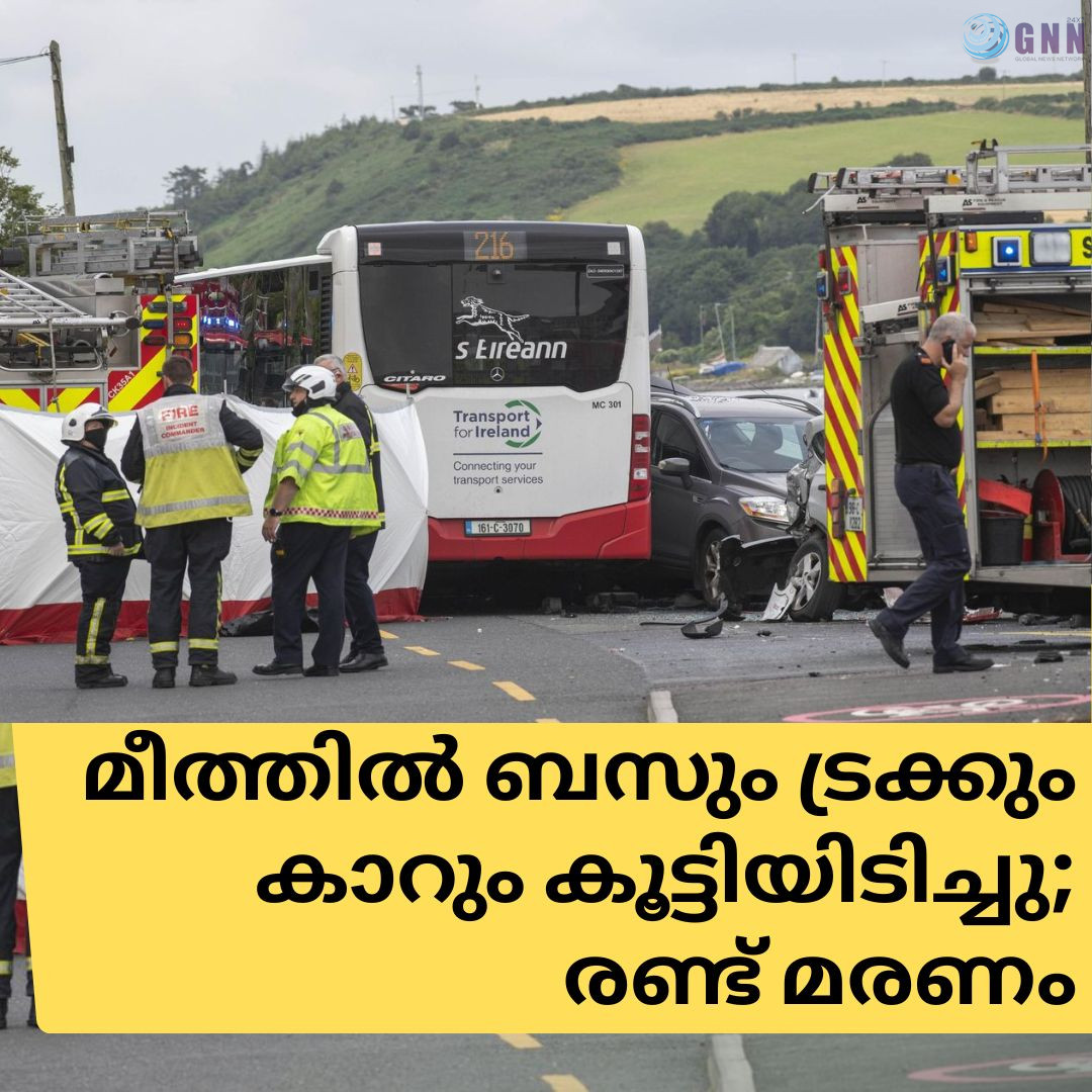 മീത്തിൽ ബസും ട്രക്കും കാറും കൂട്ടിയിടിച്ചു; രണ്ട് പേർ മരിച്ചു, നിരവധി പേർക്ക് പരിക്ക്