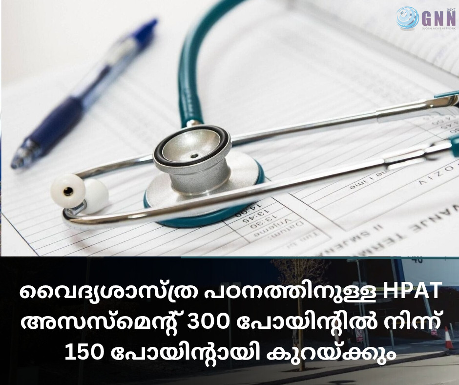 വൈദ്യശാസ്ത്ര പഠനത്തിനുള്ള HPAT അസസ്‌മെന്റ് 300 പോയിന്റിൽ നിന്ന് 150 പോയിന്റായി കുറയ്ക്കും
