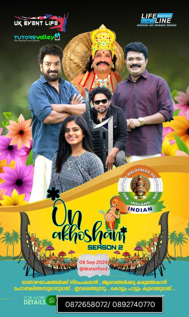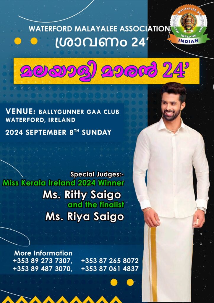 വാട്ടർഫോർഡിലെ മുഴുവൻ മലയാളികളെയും ഓണാഘോഷ പരിപാടികളിലേക്ക് സ്വാഗതം ചെയ്യുന്നതായി WMA കമ്മിറ്റി അറിയിച്ചു.