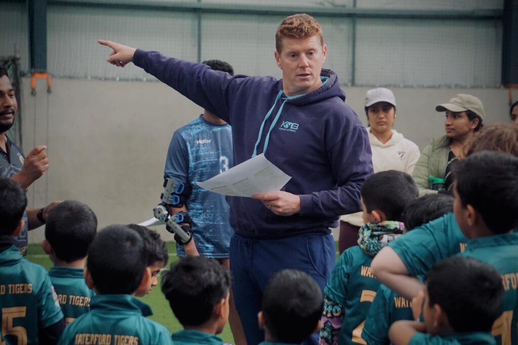 ബാലിഗണ്ണർ ഇൻഡോർ സ്റ്റേഡിയത്തിൽ ഉച്ചയ്ക്ക് 1:30 ന് ആവേശകരമായ ഉദ്ഘാടന ചടങ്ങോടെയാണ് ക്യാമ്പ് ആരംഭിച്ചത്. വാട്ടർഫോർഡ് ടൈഗേഴ്സ് ക്രിക്കറ്റ് ക്ലബ്ബ് മാനേജർ ജസ്റ്റിൻ, അയർലൻഡ് ക്രിക്കറ്റ് ഇതിഹാസം കെവിൻ ഒബ്രിയാന് വാട്ടർഫോർഡ് ടൈഗേഴ്സ് ജേഴ്സി നൽകി ക്യാമ്പ് ഔദ്യോഗികമായി ഉദ്ഘാടനം ചെയ്തു. കെവിൻ, തൻ്റെ അക്കാദമിയെ പ്രതിനിധീകരിച്ച്, യുവ മനസ്സുകളെ രൂപപ്പെടുത്തുന്നതിലും ടീം വർക്ക്, അച്ചടക്കം തുടങ്ങിയ ജീവിത നൈപുണ്യങ്ങൾ വളർത്തിയെടുക്കുന്നതിലും സ്പോർട്സിൻ്റെ പ്രാധാന്യത്തെക്കുറിച്ച് പ്രചോദനാത്മകമായ വാക്കുകൾ കുട്ടികളുമായി പങ്കിട്ടു. കുട്ടികൾക്കിടയിൽ ക്രിക്കറ്റ് പ്രോത്സാഹിപ്പിക്കുന്നതിനുള്ള അദ്ദേഹത്തിൻ്റെ അഭിനിവേശം പരിശീലത്തിൽ പൂർണമായി പ്രകടമായിരുന്നു.
