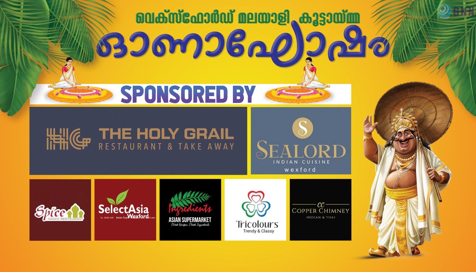 ഐശ്വര്യവും സമൃദ്ധിയും നിറയുന്ന ഓണനാളിനെ ആഘോഷത്തോടെ വരവേൽക്കുകയാണ് വെക്സ്ഫോർഡ് മലയാളികളും. വെക്സ്ഫോർഡ് മലയാളി കൂട്ടായ്മയുടെ ഓണാഘോഷ പരിപാടി ആഗസ്റ്റ് 28, ഉത്രാടം നാളിൽ നടക്കും. മുൻവർഷങ്ങളിലെ പോലെ അതിവിപുലമായ ആഘോഷപരിപാടികളാണ് സംഘടിപ്പിച്ചിരിക്കുന്നത്. The Holy Grail Restaurant & Take Away , SEALORD Indian Cuisine, Spice Indian Restaurant , SelectAsia Wexford, Ingredients Asian Supermarket, Tricolours Trendy & Classy, Copper Chimney Indian& Thai Restaurant എന്നിവരാണ് മുഖ്യ സ്പോൺസർമാർ.