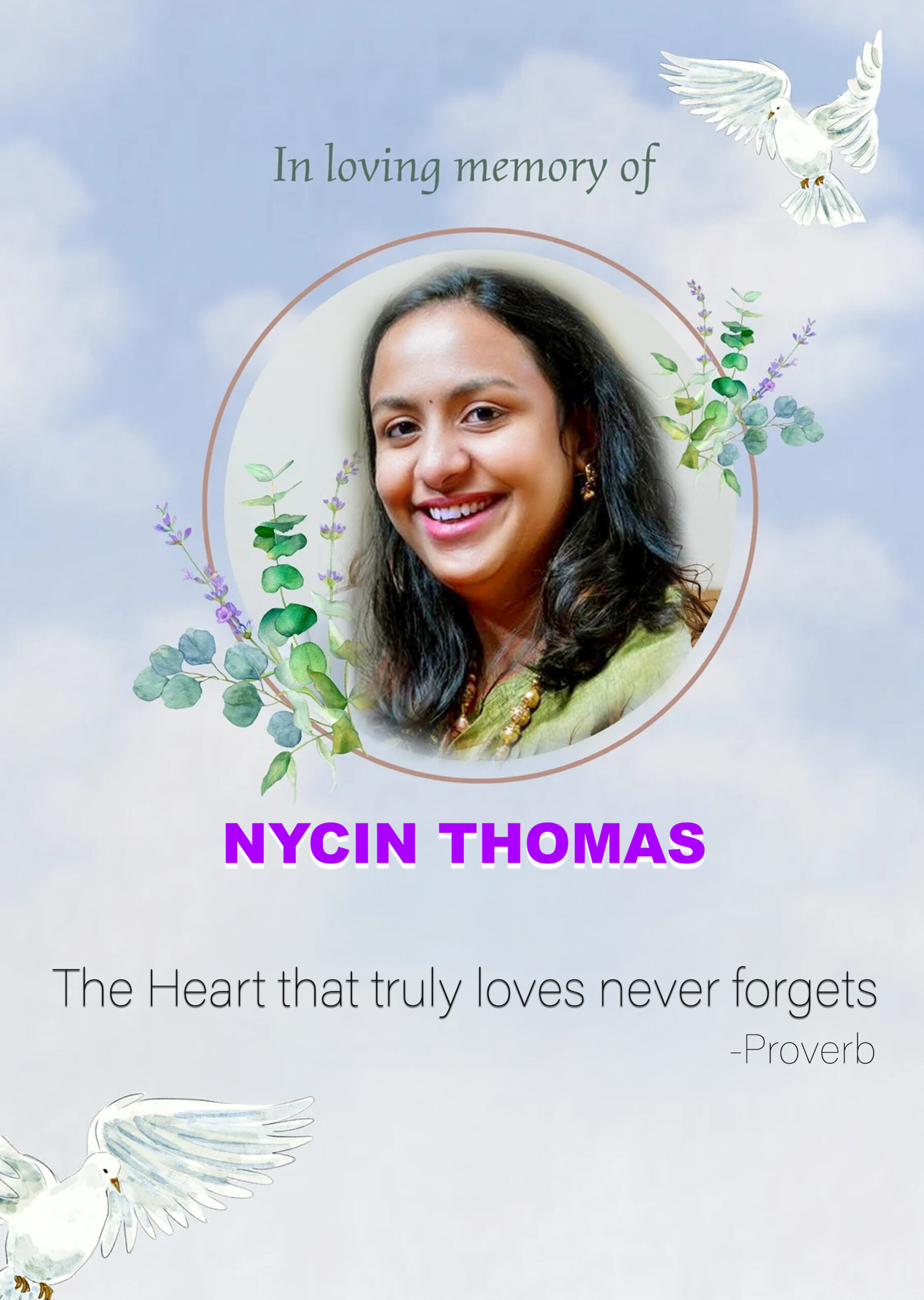Nycin Thomas belonged to the Maliyekal Chettakkal family from Chalakkudy. She is survived by her husband, Albin Sebastian Sratel, a nurse at Sligo University Hospital; children, Nethan Sebastian Sratel and Thomas David Sratel; father, C.A. Thomas; mother, Shobha Thomas; and siblings, Serin Thomas (nurse in Australia) and Angel Thomas (Ireland).