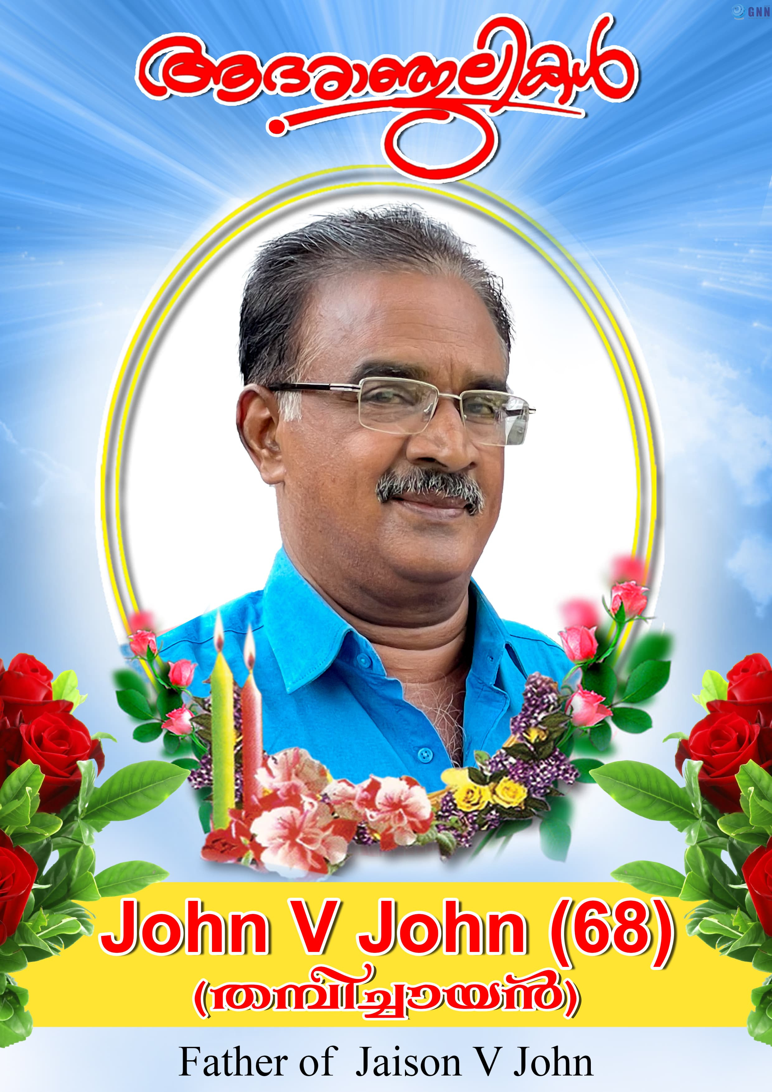 വാട്ടർഫോർഡ് മലയാളി ജെയ്സൺ ജോണിന്റെ പിതാവ് ജോൺ വി. ജോൺ (തമ്പിച്ചായൻ) (വേങ്ങഴിയിൽ വീട്, പേരിശ്ശേരി, ചെങ്ങന്നൂർ) നിര്യാതനായി. 68 വയസ്സായിരുന്നു. Knockeen നഴ്സിംഗ് ഹോമിന്റെ റീജണൽ ഡയറക്ടറാണ് ജെയ്സൺ. സംസ്കാരം വ്യാഴാഴ്ച വൈകുന്നേരം 3 മണിക്ക് പേരിശ്ശേരി സെന്റ് മേരീസ് ഓർത്തഡോൿസ് വലിയ പള്ളിയിൽ.