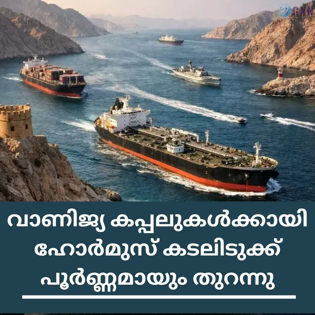 വാണിജ്യ കപ്പലുകൾക്കായി ഹോർമുസ് കടലിടുക്ക് പൂർണ്ണമായും തുറന്നു