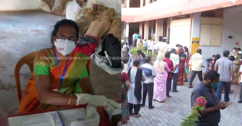 കൊല്ലത്ത് കൊറ്റങ്കര ഗ്രാമപഞ്ചായത്ത് കോളശ്ശേരി വാര്ഡിലെ ഒന്നാം നമ്പര് ബൂത്തിലാണ് ഈ സംഭവം നടന്നിരിക്കുന്നത്. ഉദ്യോഗസ്ഥയ്ക്കെതിരെ യു.ഡി.എഫ് പരാതി ഉന്നയിച്ചു. മറ്റു ഇതരകക്ഷികളും ഇതിനെ പരാമര്ശിച്ചു. തുടര്ന്ന് ആര്.ഡി.ഒ യെ വിശദാമയി അന്വേഷിക്കാം ചുമതലപ്പെടുത്തി. അതിനെക്കുറിച്ച് റിപ്പോര്ട്ട് ലഭിച്ചാല് ഉടനടി നടപടിയെടുക്കുമെന്ന് ജില്ലാ കളക്ടര് ബി.അബ്ദുള്നാസര് വ്യക്തമാക്കി. തിരുവനന്തപുരമ, കൊല്ലം, പത്തനംതിട്ട, ആലപ്പുഴ, ഇടുക്കി എന്നിവടങ്ങളിലാണ് ഇന്ന് വോട്ടെടുപ്പ് നടക്കുന്നത്. ആലപ്പുഴയിലെ ചെട്ടികുളങ്ങര പഞ്ചായത്തിലെ ഒരു വാര്ഡിലും കൊല്ലം പന്മന പഞ്ചായത്തിലെ 2 വാര്ഡുകളിലും സ്ഥാനാര്ത്ഥികള് മരണപ്പെട്ടതിനാല് ഇലക്ഷന് മാറ്റി വച്ചിട്ടുണ്ട്.