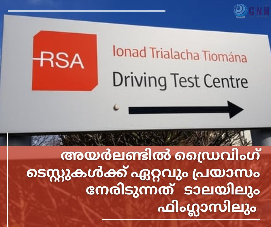 അയർലണ്ടിൽ ഡ്രൈവിംഗ് ടെസ്റ്റുകൾക്ക് ഏറ്റവും പ്രയാസം നേരിടുന്നത് ടാലയിലും ഫിംഗ്ലാസിലും